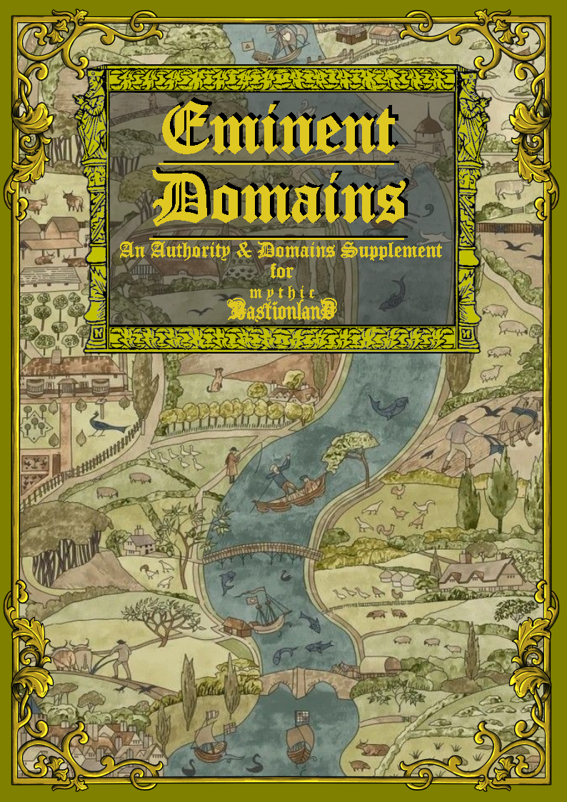 Authority & Domains expands the existing rules in Mythic Bastionland with a new, simple, Domain Resources system to enhance long-term play without excessive resource management.
